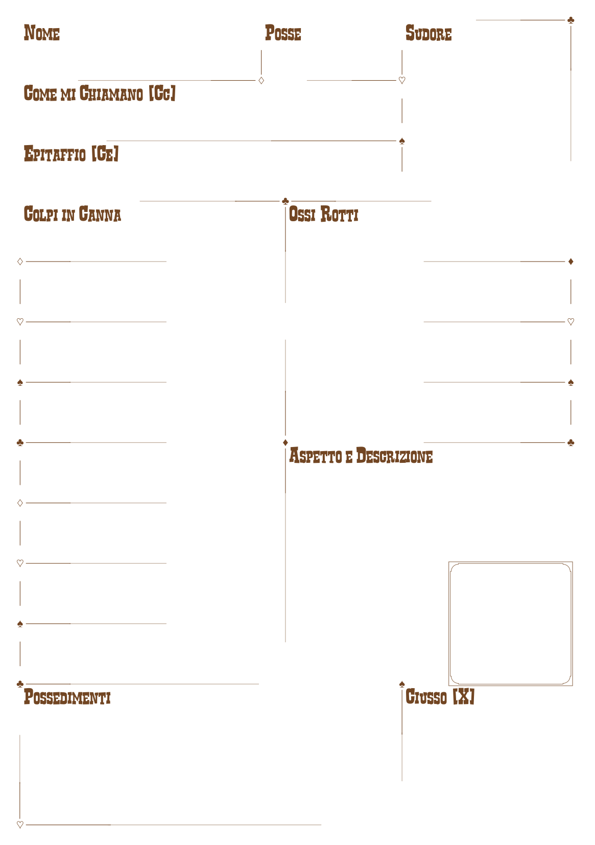 Ancora, il PG ha un Ce a +1 che non è altro che il suo epitaffio, ciò che vuole scritto sulla lapide.